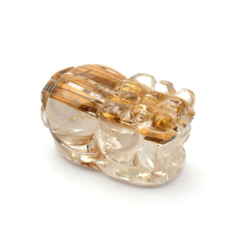 美しいブロンズ針の艶が豊かさを象徴 1点物 ゴールド タイガールチル クォーツ 貔貅 ヒキュウ GHHKU 2 3 g蓄財 金運祈願 運気アップ 財運 商売 盛 昇運 お守り ご褒美 パーツ 貫通穴あり 京海堂 天然石の卸 京の蔵