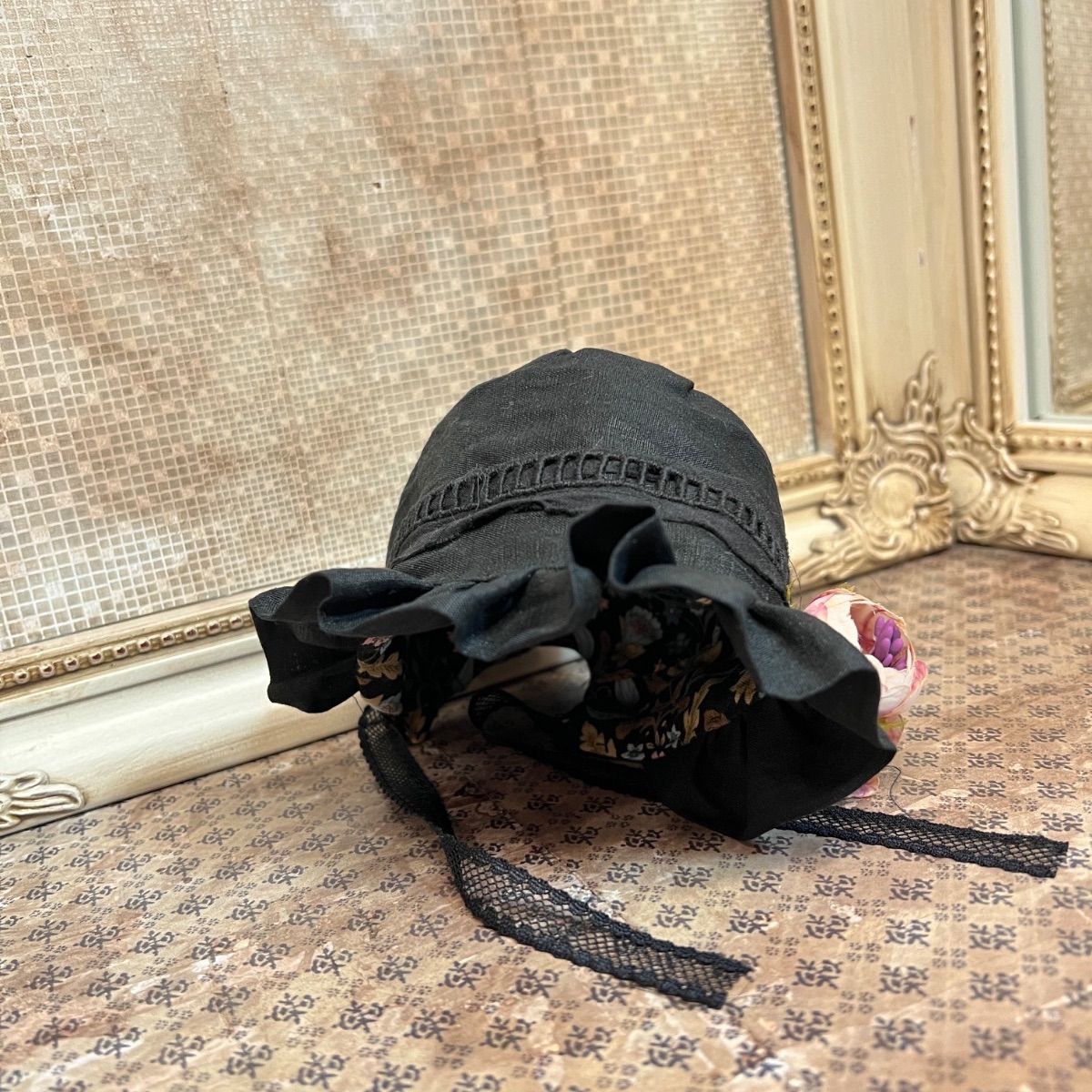 黒リネンのお帽子のセットになります。