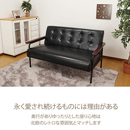 アーバン通商 レトロソファ ブラック アンティーク調デザイン レザー製品 アイアン脚 2人掛け AZ-1521