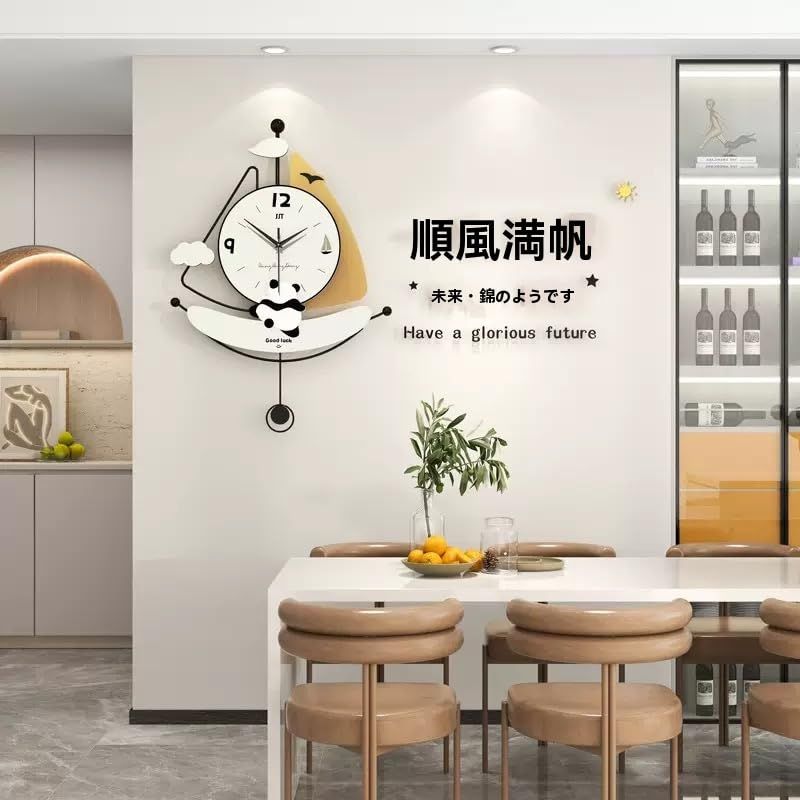 デザイン性: 帆船をモチーフにした可愛らしいデザインで、白と黒のコントラストが美しい壁掛け時計です