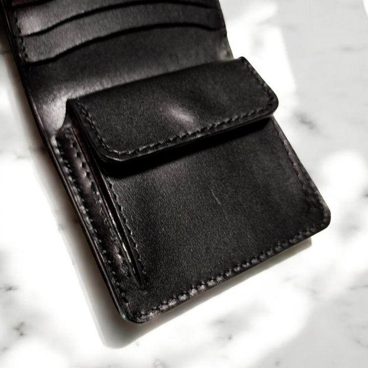 質の良い栃木レザー社のオイルレザーを三つ折りトラッカーウォレットに仕上げました。