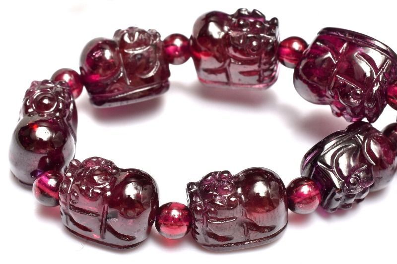 1点物 透過性あり 高品質 ロードライトガーネット 10-11 x 8 丸玉4 mm 貔貅彫刻 ブレスレット パワーストーン 天然石 _MB 226
