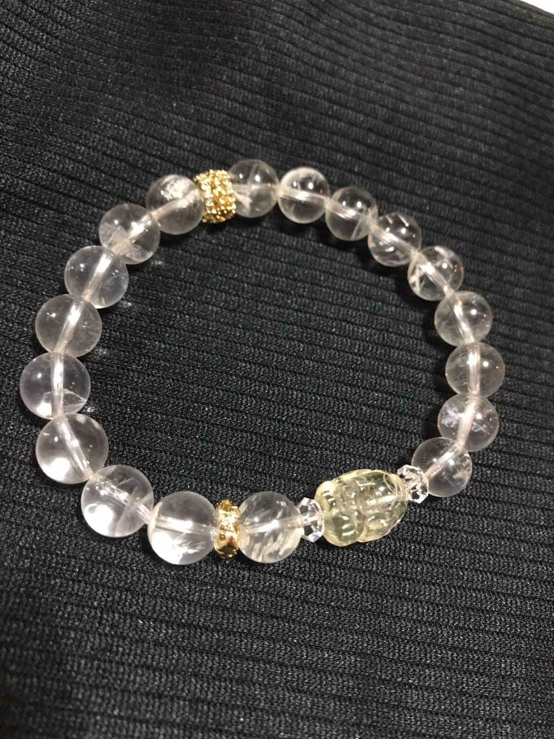 透明度の高い高品質リビアングラスのレアな手彫りガネーシャ神のビーズとセリサイトインスターローズクォーツのデザインブレスレットです。