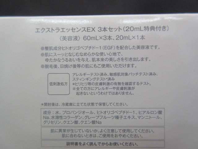 商品名:未使用 コスメ TBC エクストラエッセンスEX 3本セット(20ml特典付き) 60ml×3本・20ml×1本 美容液