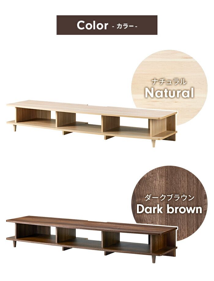 ナチュラルな木目調がおしゃれなローボード。圧迫感を与えないオープン棚でお部屋を広く見せるデザインです。天板は安心の耐荷重60kgで大型テレビも設置可能。北欧テイストの丸みある天板と脚部がやさしい雰囲気を演出します。背板のないオープンタイプだから機器の熱がこもりにくく、配線もスムーズ。シンプルでどんなインテリアにも自然に馴染みます。