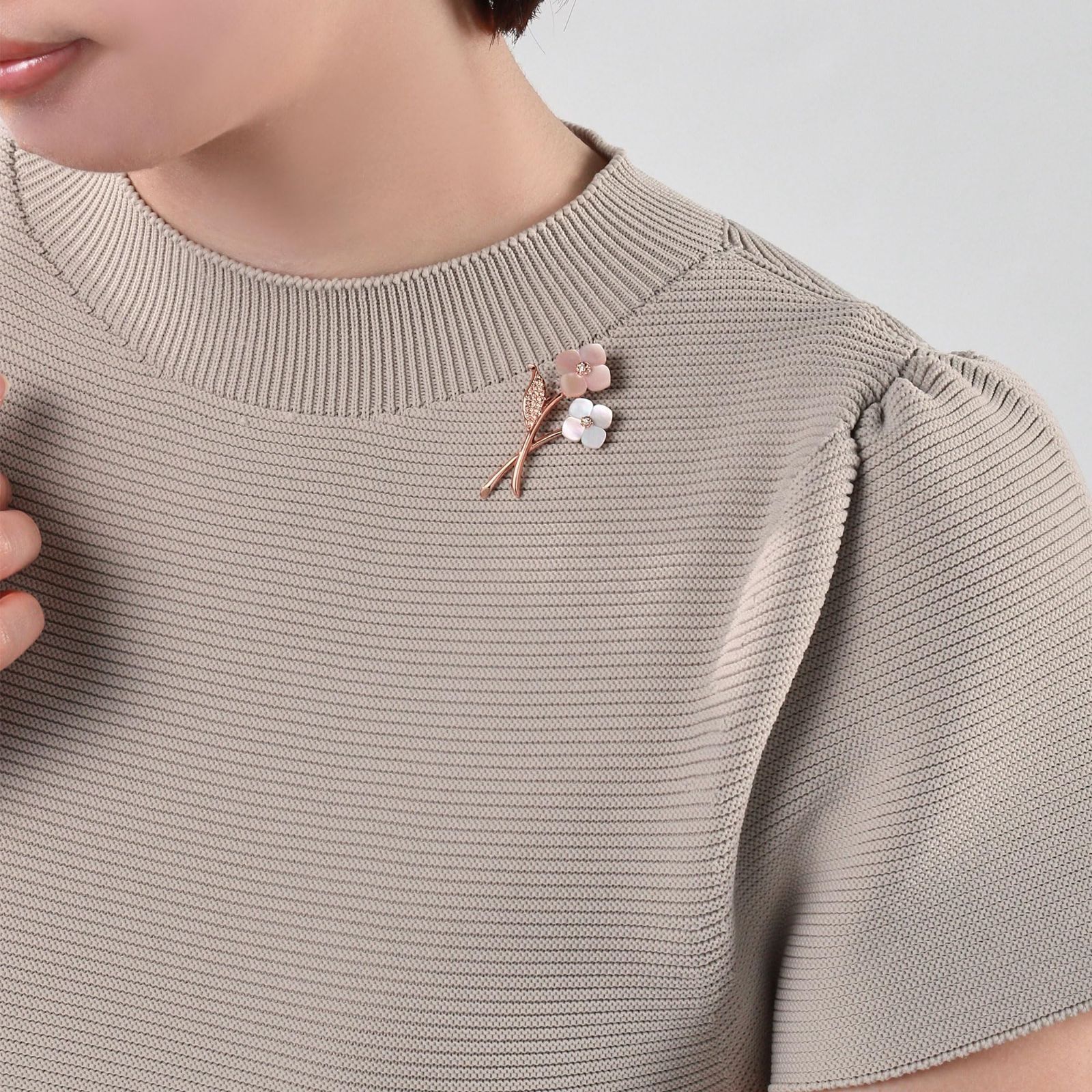さりげないサイズ感と、素材の上質感が際立ったブローチは、晴れの席にも品良く華を添えます。