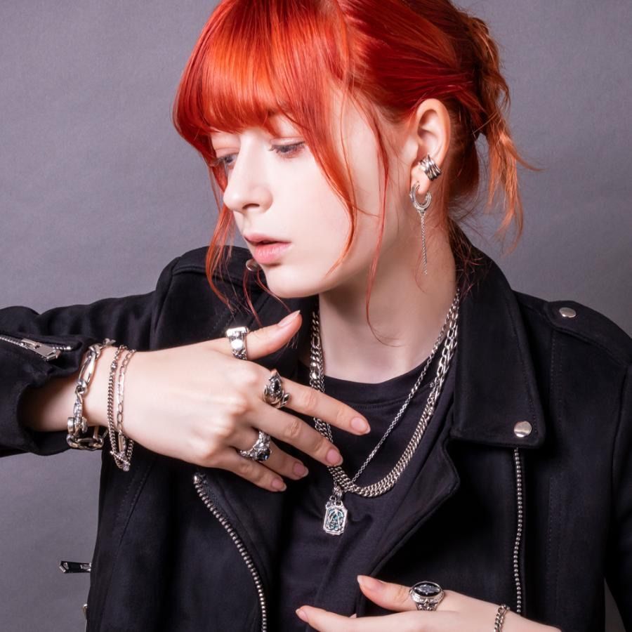 唐草風の透かしで描いた「AC」イニシャルの下に、アマゾナイトカラーのマーブルを敷いた印台リングです。青緑の透け感が光を取り込み、鏡面と燻しのコントラストが彫刻的な奥行きを演出。両脇にはCzクリアを品よくセッティングしました。側面から裏面までクラシカルなトレサリーと唐草の意匠を施し、見えない部分まで美しい仕立て。SV925にロゴ・ホールマーク・「925」刻印入り。厳選された素材と丹念な研磨まで、一貫したクラフトマンシップが永遠の品格を叶えます。重厚で指馴染みの良いフリーサイズ。単体はもちろん、ミニマルなリングとのレイヤードでも存在感を保ち、スタイルに確かな核を与えます。ユニセックスでギフトにも最適です。