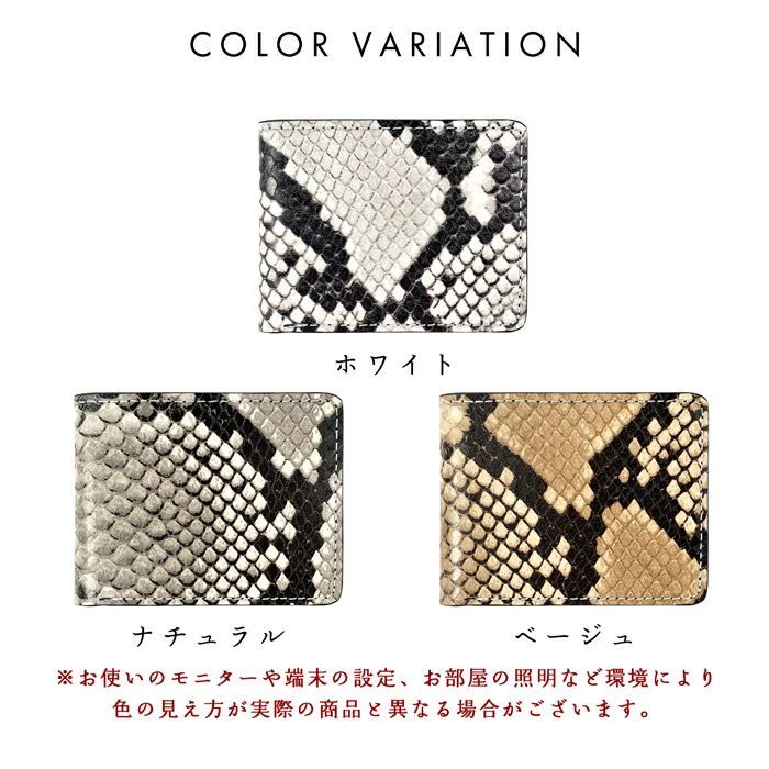 コンパクトでシンプルなデザインでありながら、使いやすさにこだわった本革二つ折り財布です。本物に限りなく近いダイヤモンドパイソンを表現しております。