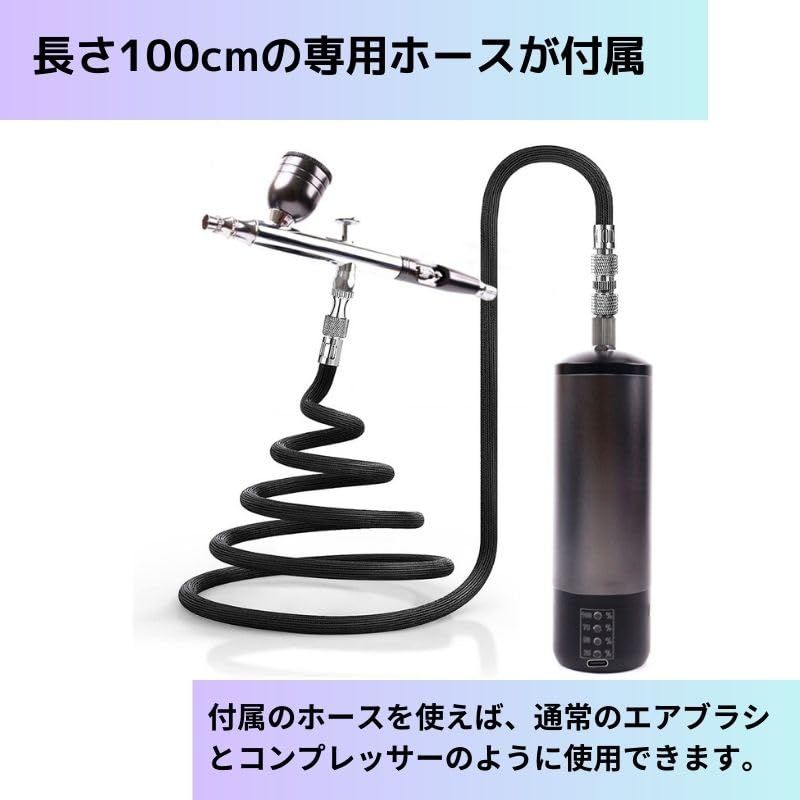 ✅【100cmホース付属】付属のホースを使えば通常のエアブラシとコンプレッサーのように使用できます。コンプレッサーと一体型での使用はもちろん、ホースを接続すれば操作性アップ!