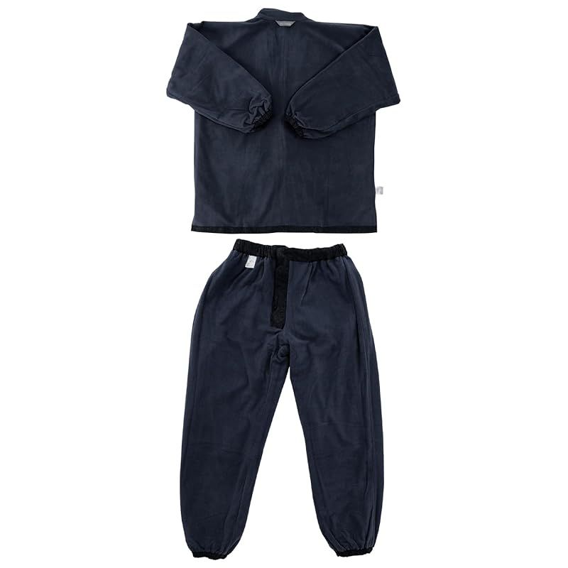 キョウエツ 作務衣 冬用 中綿入り 紬風生地 フリース裏地 16 メンズ L 紺