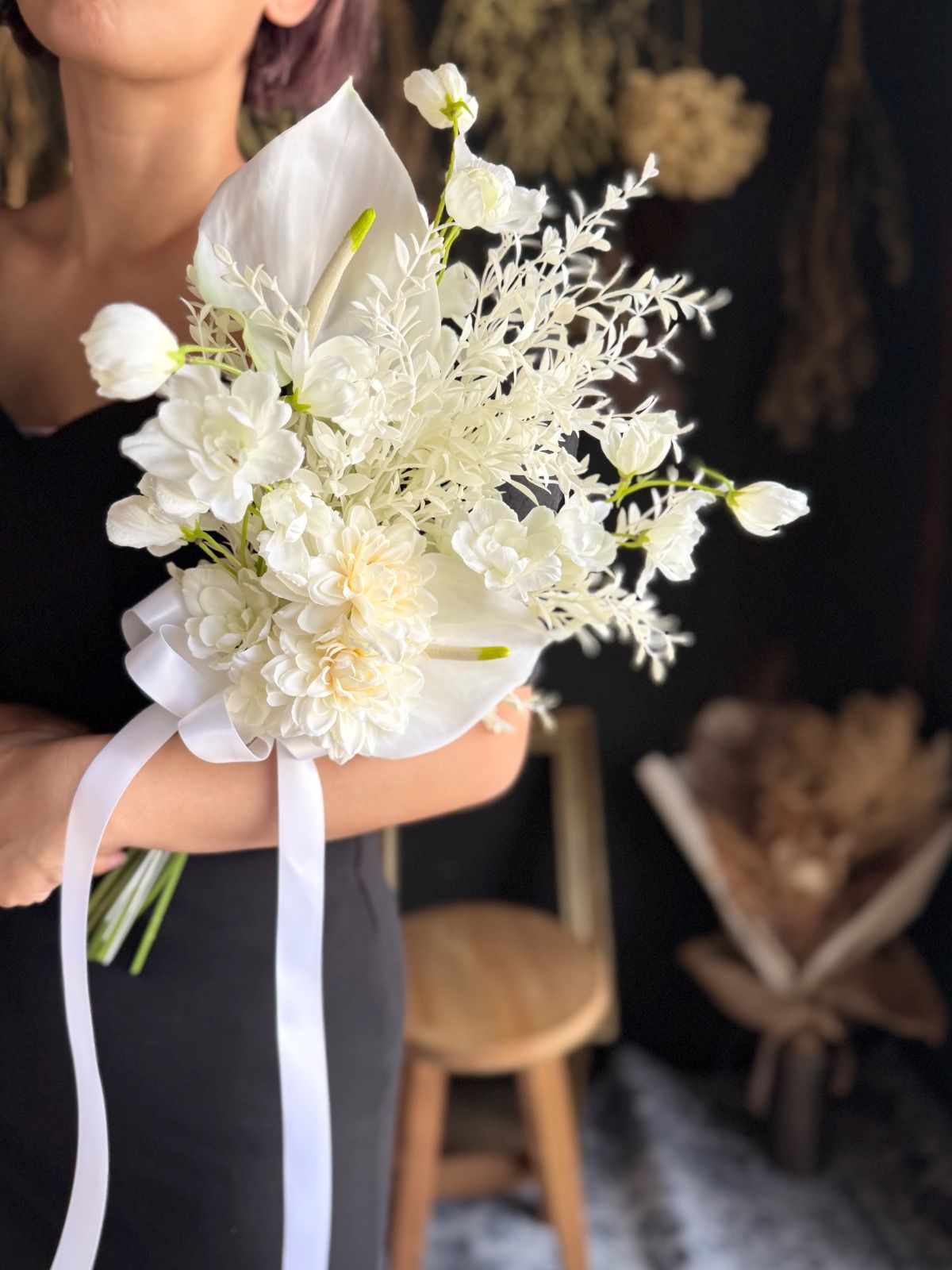 アーティフィシャルフラワー(造花)を使用しているため、持ち運びやすく、挙式後も大切な思い出として残せます。