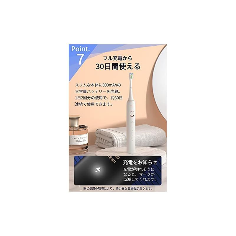 【 リニア音波振動式 】 42000回/分の高速振動で、口内の汚れを丁寧に一掃。 口の中で水流を振動させ、ブラシが届きにくいところまでしっかりブラッシング。心地よい振動で歯茎をマッサージします。