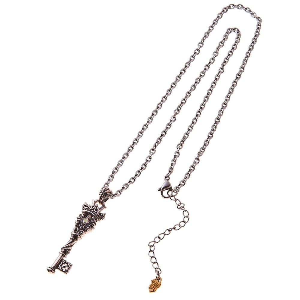 Unlock new chapters with a key that carries its own legend. This pendant elevates the classic key motif with a regal crown and cross, sculpted in precise proportions that sit cleanly at the collarbone. Ornamental scrollwork is carved in relief to cast deep, dramatic shadows, while a single mystic quartz at the center shimmers with iridescent color as the light moves. The calm luster of sterling silver sets off the stone’s glow beautifully.