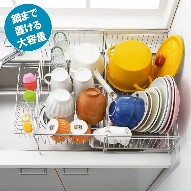 ヨシカワ 水切りラック 水切りかご 幅26×奥行47 cm 5 6人用 シンクサイド 幅の広がる 1306054 食器 水切り カゴ 台所 シンク トレー キッチン バスケット