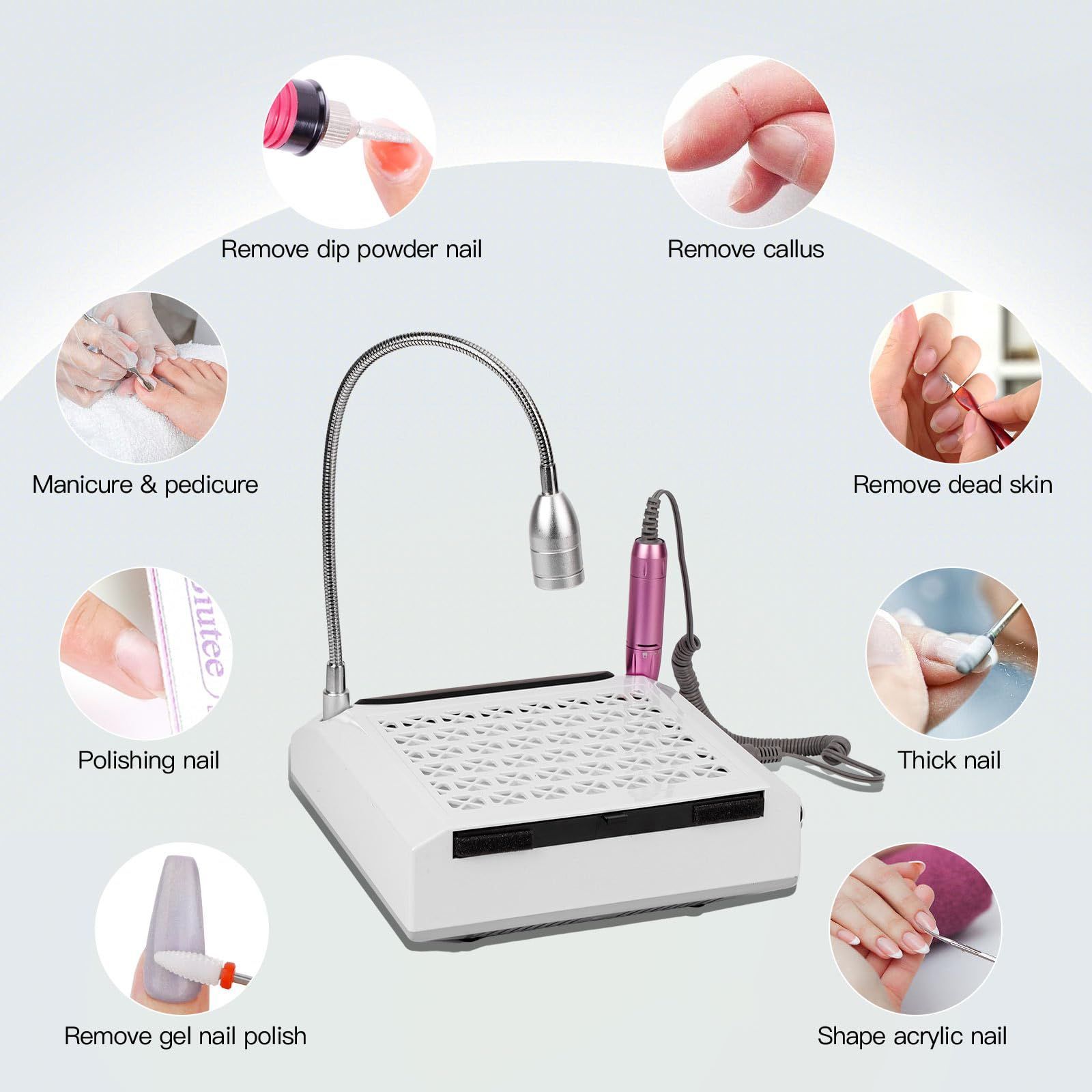 自宅サロン用 ビット 回転速度無段階調整 手首が保護でき マット付き 4500 rpm回転数 AC 100-240 V フィルター再利用 80 W ネイルマシーン ネイルドリル ネイルダスト対策 クリーナー ネイルマシン ネイルダストコレクター