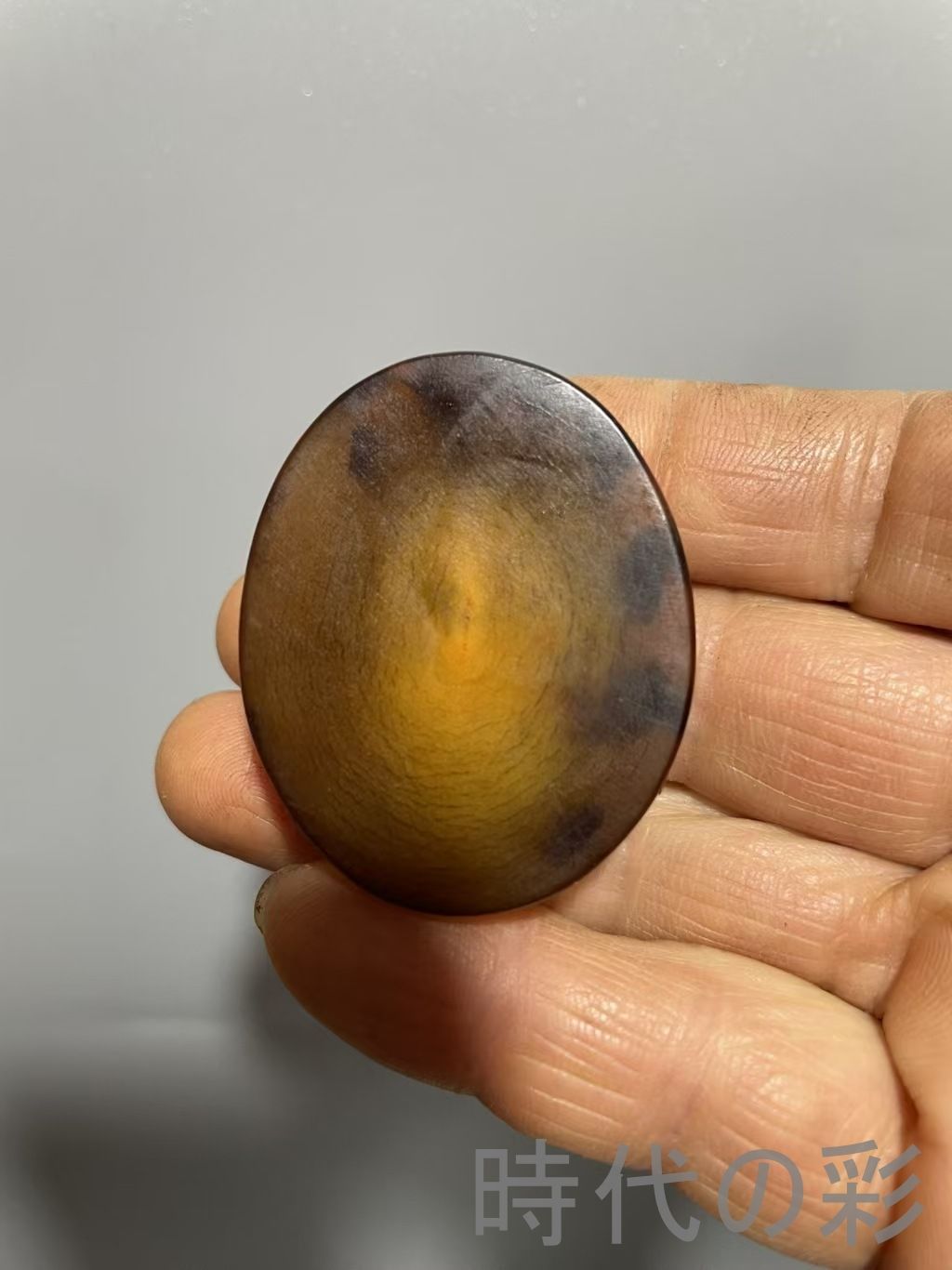 老牛角を用いて鐘魁捉鬼を題材に彫刻された佩飾です。細部の刻工は精巧で、紋理清晰。護身符としても佩戴でき、吉祥の意を込めた古美術品です。