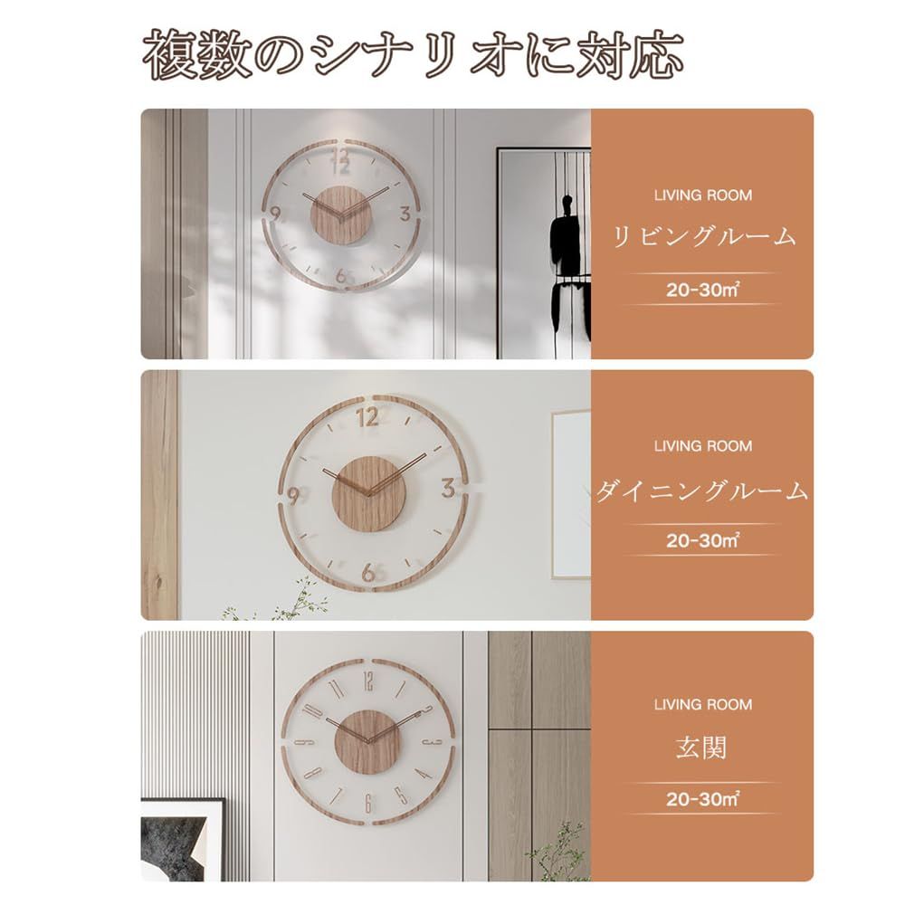 【デザイン】美しいん木目調が映える精練されたモダンデザイン。圧迫感が無く、壁に飾った時には隙間から壁紙が覗き、お部屋に溶け込みます。飽きの来ないデザインでとても落ち着いた雰囲気です。無垢材の彫刻、3Dのアラビア数字、明確なレイヤー、強い3Dの感覚で作られ、独特の視覚芸術を形成し、品質を強調しています。