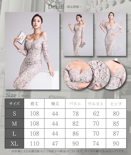 [GRAXIA] 【グラシア】キャバドレス ミディアムドレス オフショルダー ワンピース キャバ嬢 キャバクラ ラウンジ 七分袖 アイラッシュレース 花柄 膝丈 レディース ピンク Mサイズ