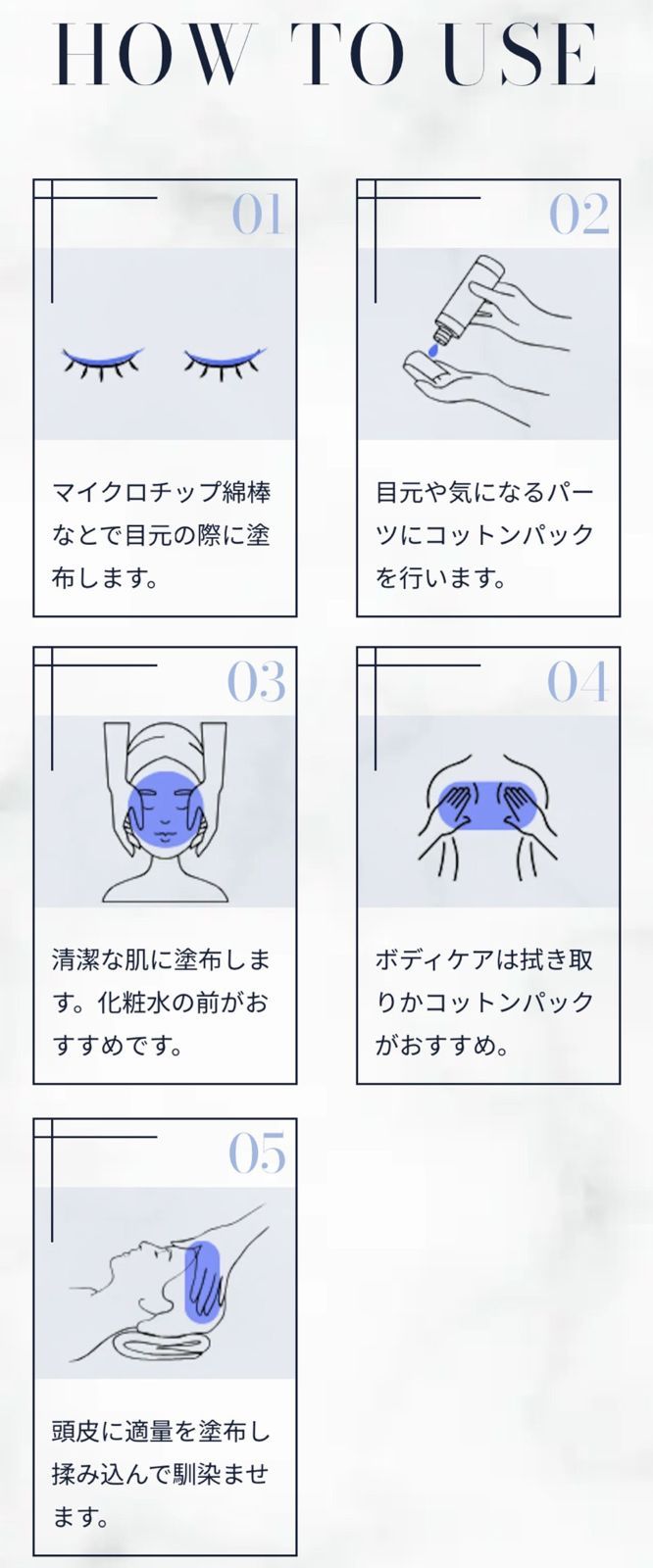 導入化粧水としてお使いいただく場 合、洗顔後、いつものお手入れの一 番最初にご使用ください。
