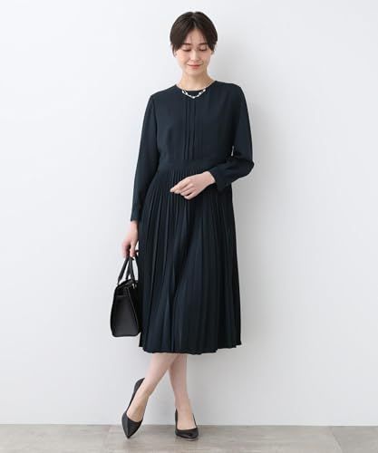 [インディヴィ] ミドルワンピース 春 【洗える】 スタイルUPプリーツワンピース 12752003 レディース ネイビー(094) 38(M)