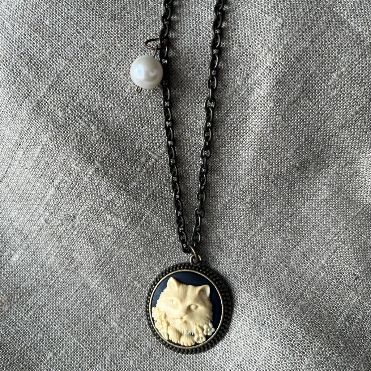大人可愛い猫のヴィンテージカメオネックレス?⬛