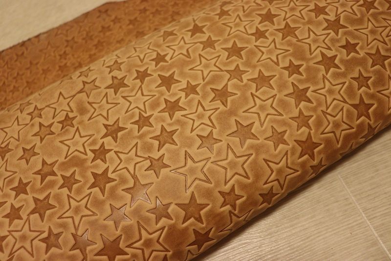 TAN 202 ds ヌメ革 牛革 イタリア レザー スター型押し はぎれ 一枚革 レザークラフト 革 皮 本革 diy 生地 材料