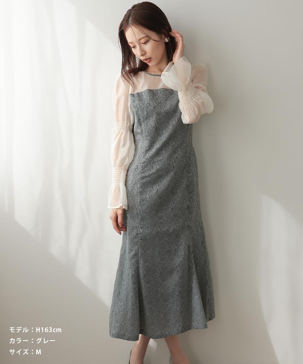 [MORE AUNI] パーティ ワンピース ドレス レディース キャンディ スリーブ ジャガード ドレス 結婚式およばれワンピース パーティードレス 1.5次会 2次会 フォーマル 春 夏 服 秋 冬 大人 オトナ キレイメ カワイイ 324226 (GRY
