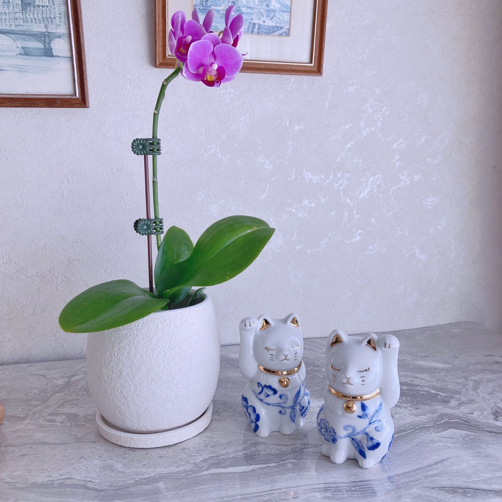 上品なシノワズリ柄に手書きで金を施した招き猫です。