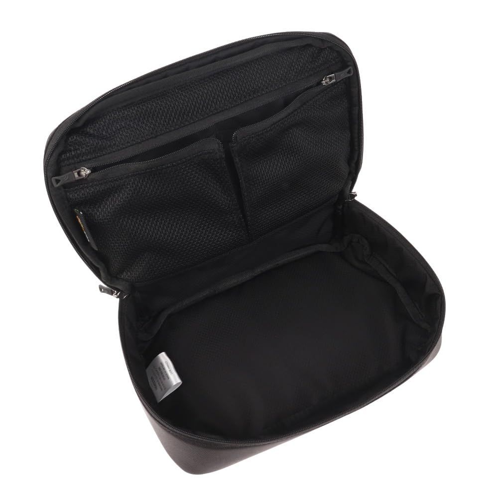 高強度の1050デニールリサイクルコーデュラバリスティックナイロンを使用した、2.5リッター容量の小物ポーチです。デジタルガジェット類を効率的に収納できる、大きく開く開口部と成形フォーム入りの自立型設計。内部には小物の整理に便利な2つのメッシュポケットを配備。単体使用時に便利なグラブハンドル付きです。