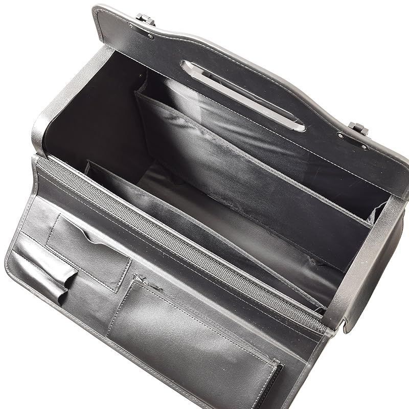2輪キャスターのパイロットケースです。メイン素材にはお手入れの簡単なPVCを使用。 最大の特徴の上部取り出し口は上方向に大きく開きます。 上部蓋裏にはペン差し2、カード入れ、小物ポケットを装備。 キャリーバー付の希少なパイロットケースです。持ち運びに優れ、移動の多い方に最適です。