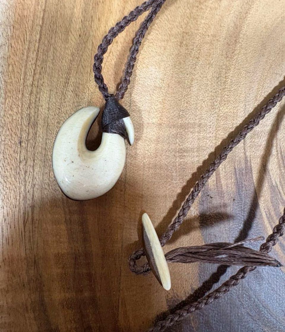 ハワイアンコア×マッコウの張り合わせフィッシュフックネックレスです。