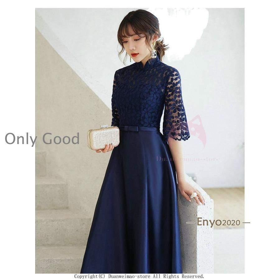 パーティードレス ミモレ丈 結婚式 ワンピース 結婚式ドレス フォーマルドレス 20代30代40代 五分袖 お呼ばれ 顔合わせ 服