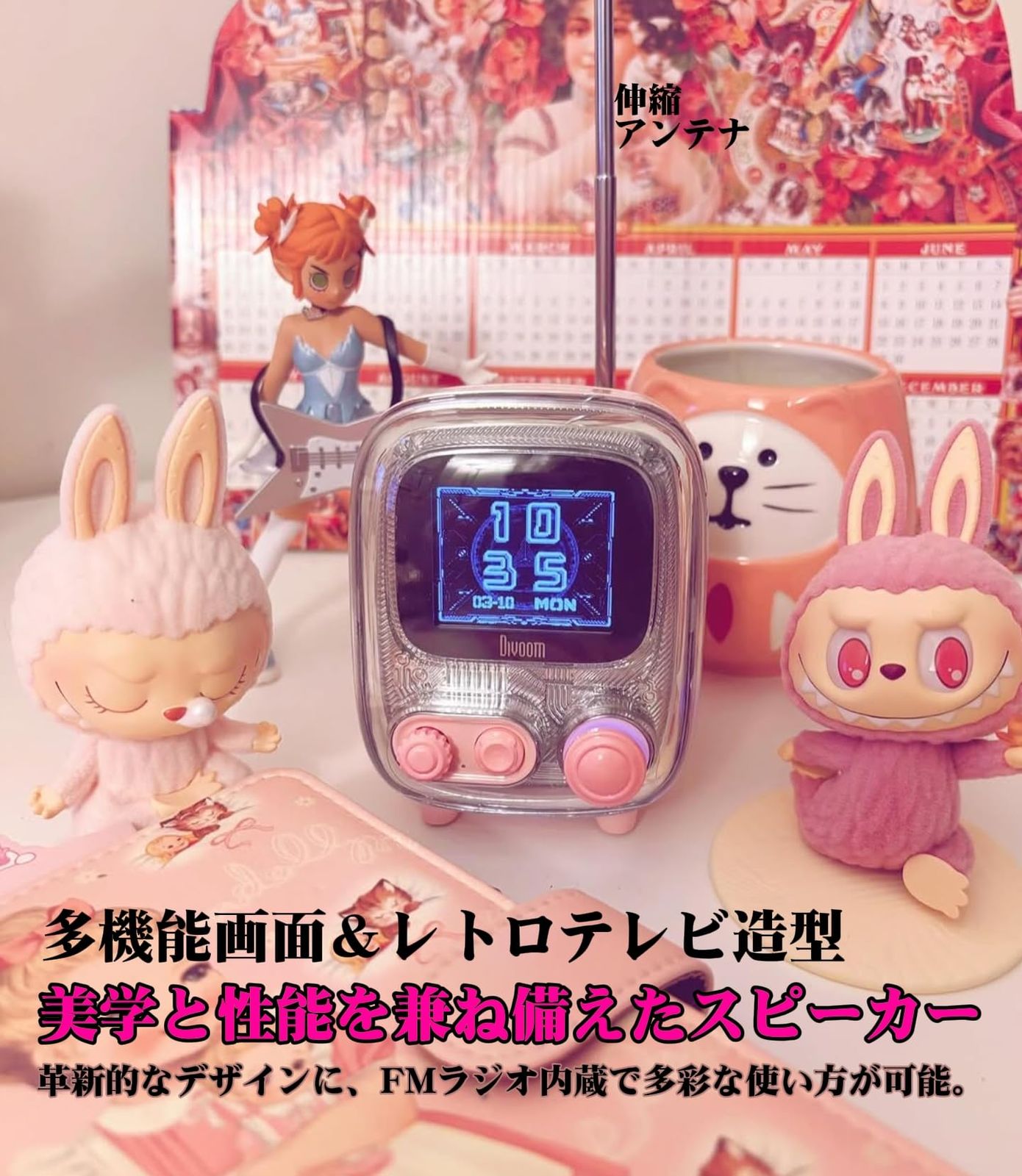 Divoom Tiivoo-2 スピーカー Bluetooth 5.3 PC TFカード FMラジオ対応 8時間持ち 低音に特化した ひとり没入型 アプリ ピクセルアート 写真再生 卓上時計 OTA対応 DSP搭載 解像度128 160 レトロ