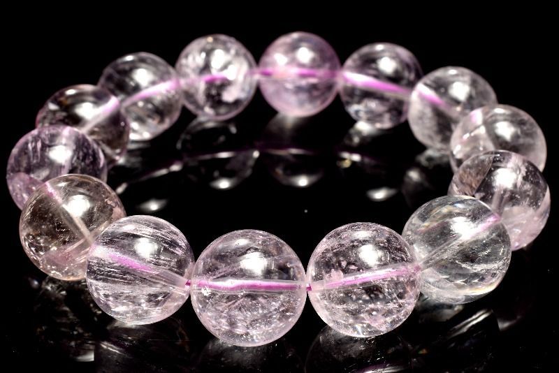 1点物 透明クリア 無垢 クンツァイト 14 mm ブレスレット パワーストーン 天然石 _MC 201