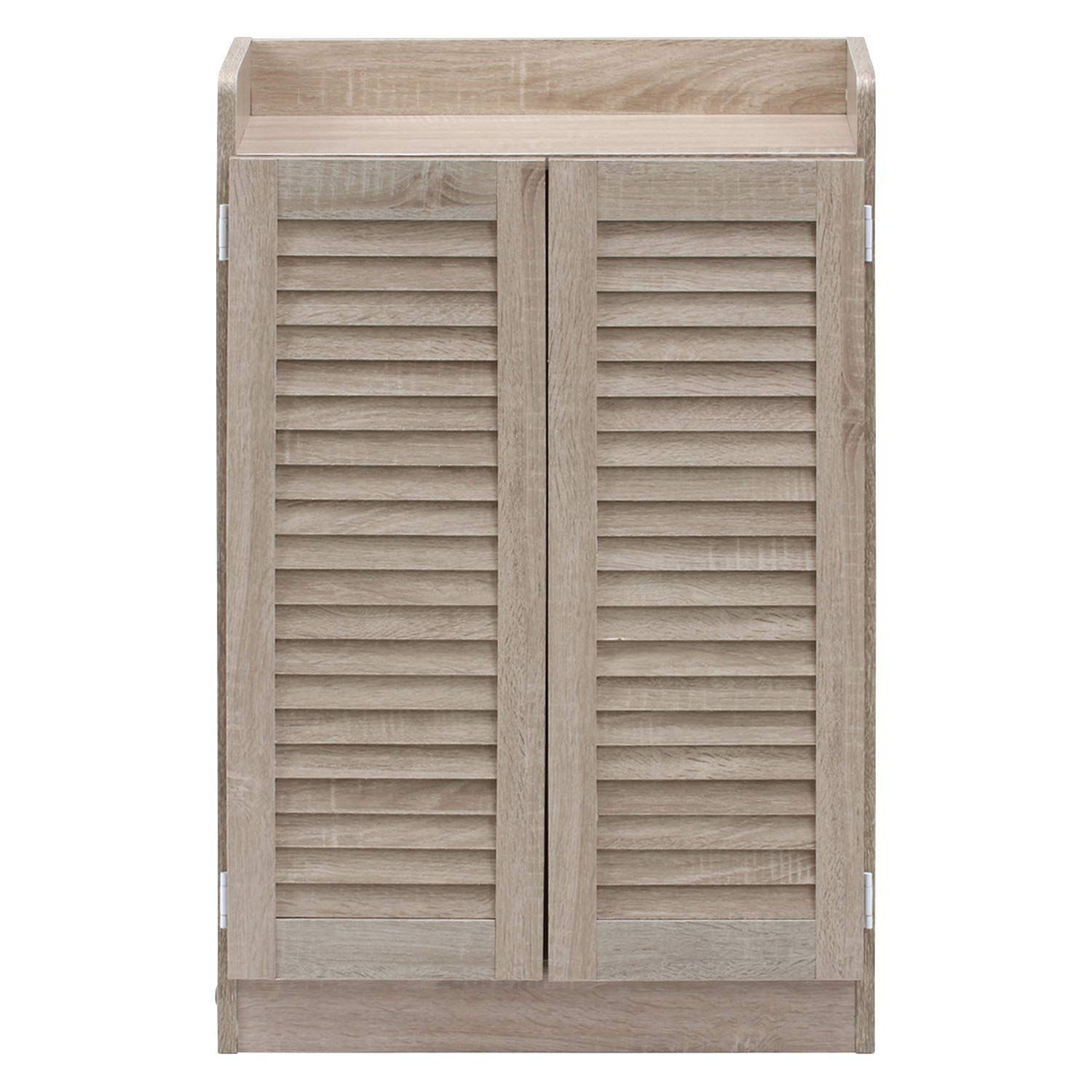 不二貿易 下駄箱 シューズラック 4段 幅60×奥行33.5×高さ90 cm ホワイトオーク ルーバータイプ オープントップ 玄関収納 靴箱 98994
