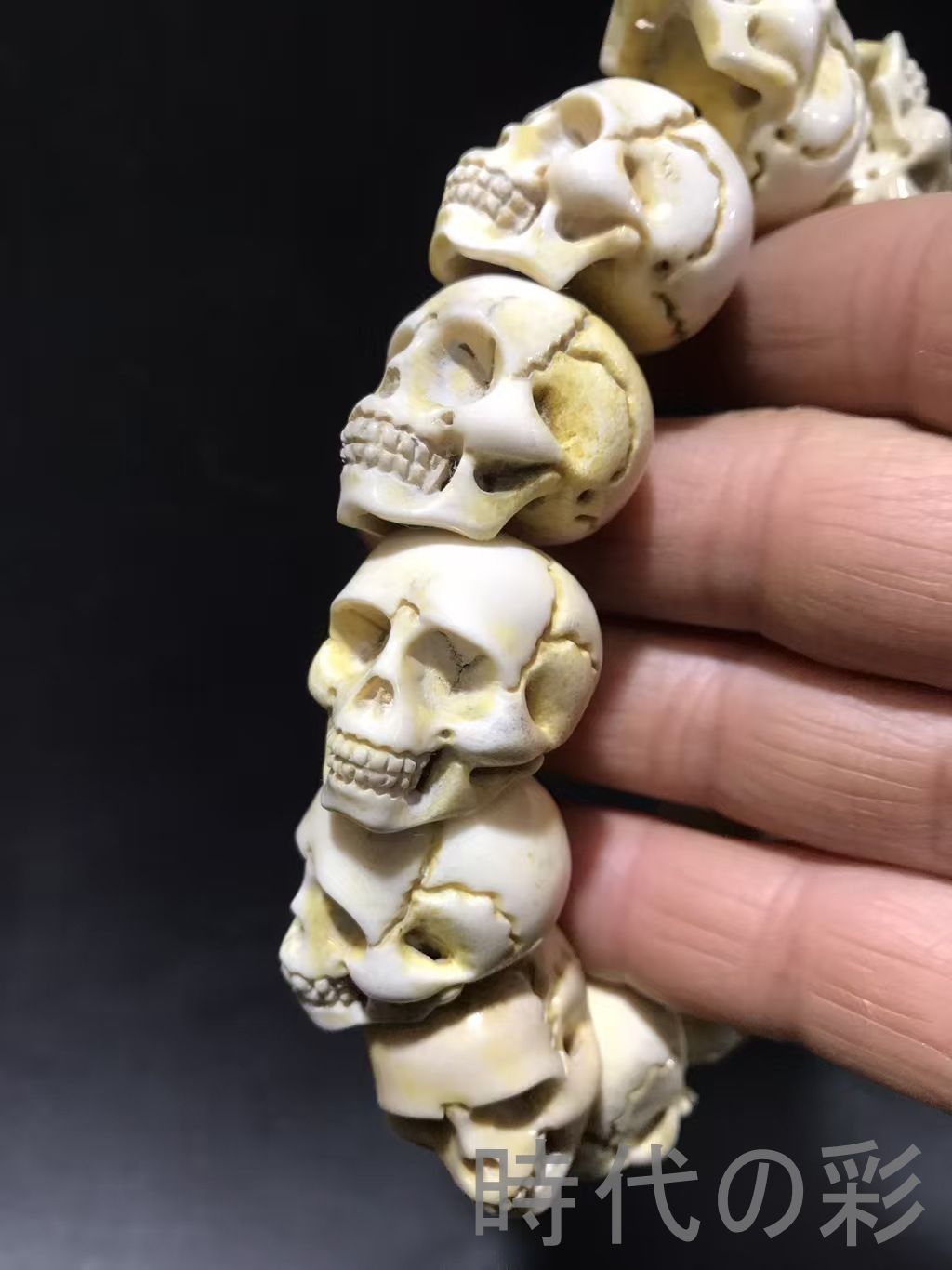 古美術 中国古玩 旧蔵 鹿角 彫刻 鬼頭 念珠 手串 唐物 骨董 装身具 細密彫刻