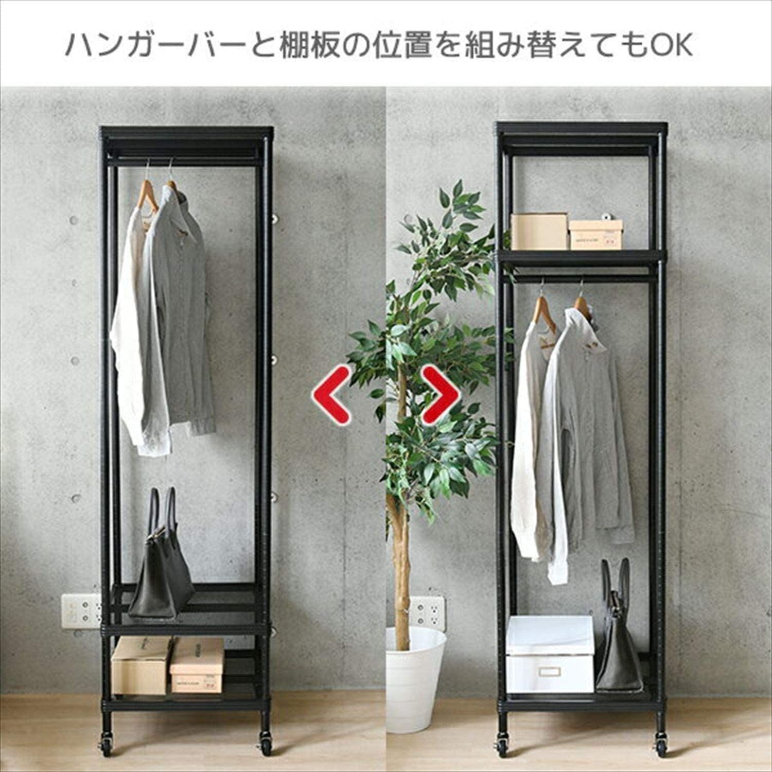 数量 全体耐荷重60㎏ 幅50.5×奥行50.5×高さ182cm 服 カバン 小物がこれ1つで収納できる 頑丈 棚板可動 スリム 組立品 ハンガーラック ブラック 山善 VNW-18050 CJ BK