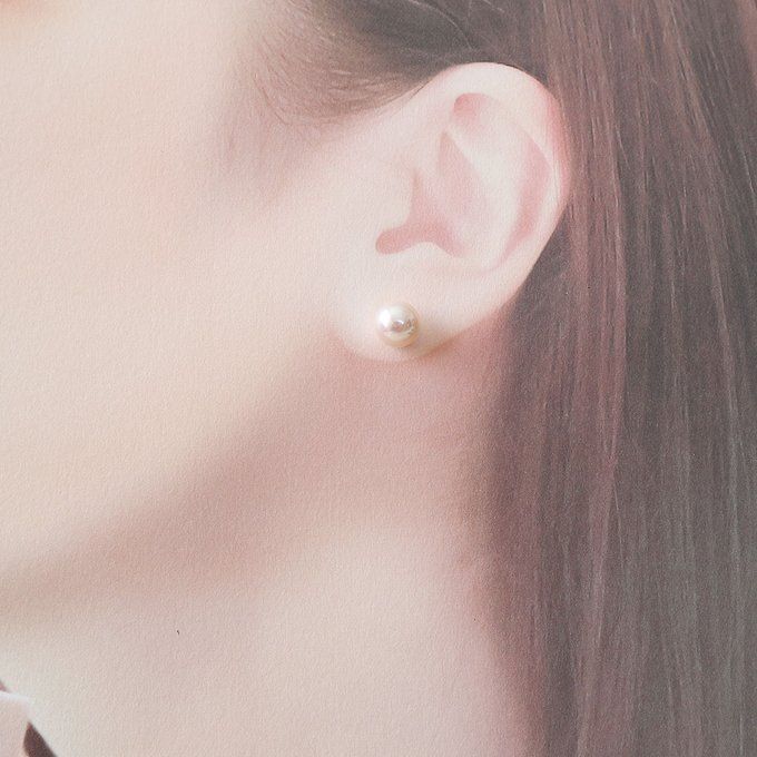 K 18 淡水ボタンパール 約8 mm 18金スケルトンキャッチ付き スタッドピアス 直結タイプ 18金