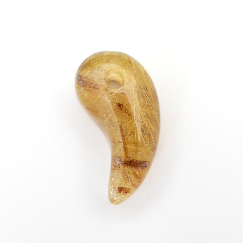様々な表情を持ち合わせたルチルが縦横無尽に内包されたルチルクォーツ勾玉です