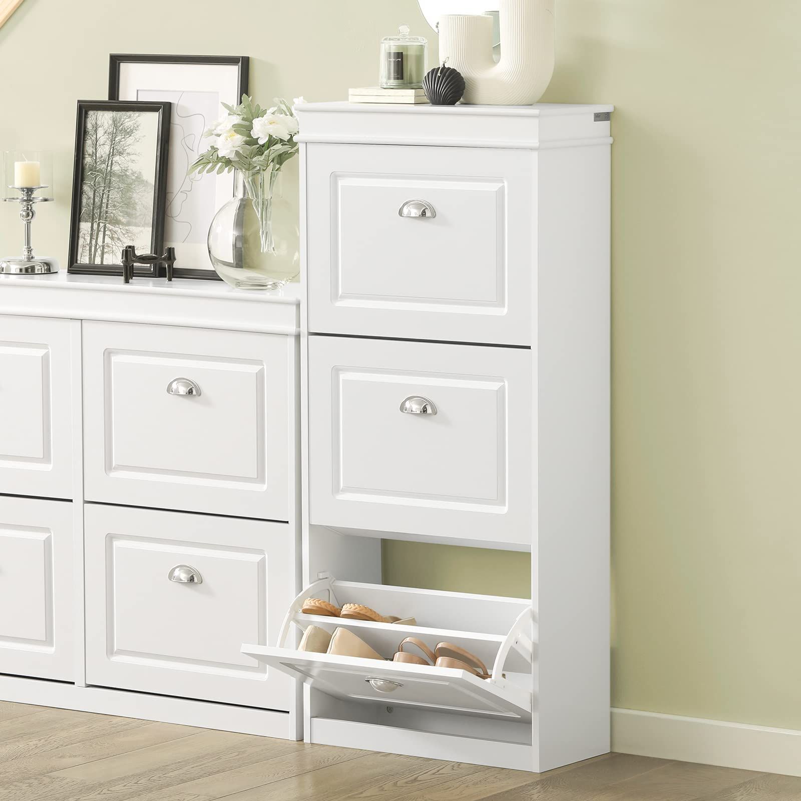 SoBuy シューズボックス 薄型 フラップ 下駄箱 スリム シューズラック 幅53x奥行24x高さ117cm 靴箱 靴 収納 玄関ベンチ 玄関収納(FSR94-W)