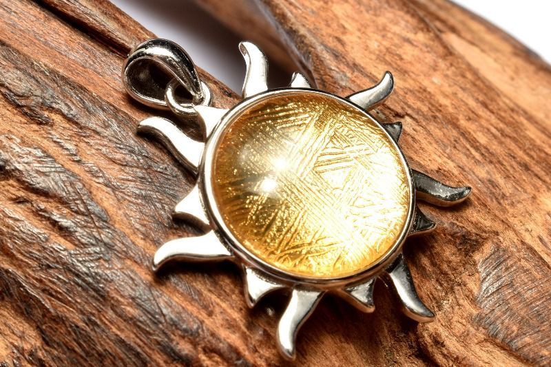 スウェーデン産シルバー925 ギベオン メテオライト隕石 15 mm ゴールドコーティング 太陽 ペンダントトップ 売り パワーストーン 天然石 _PRG 2357-2