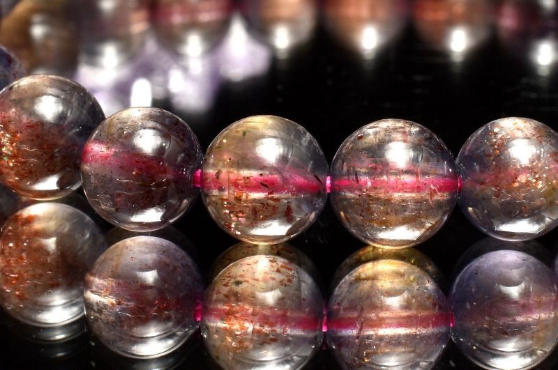 内包されたサンストーンがまるで夜空の星のようにきらめいて一粒一粒幻想的です。