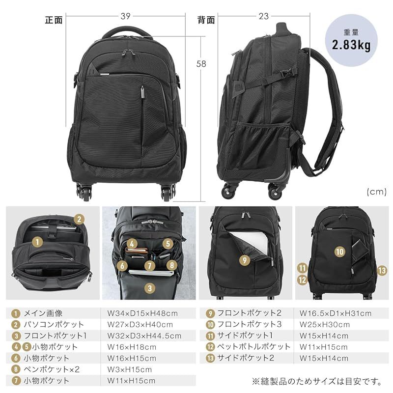 商品名:[サンワダイレクト] リュック キャリー 大容量 35L 2WAY 4輪 キャリーバッグ キャスター付き リュック 200-BAGCR011BK