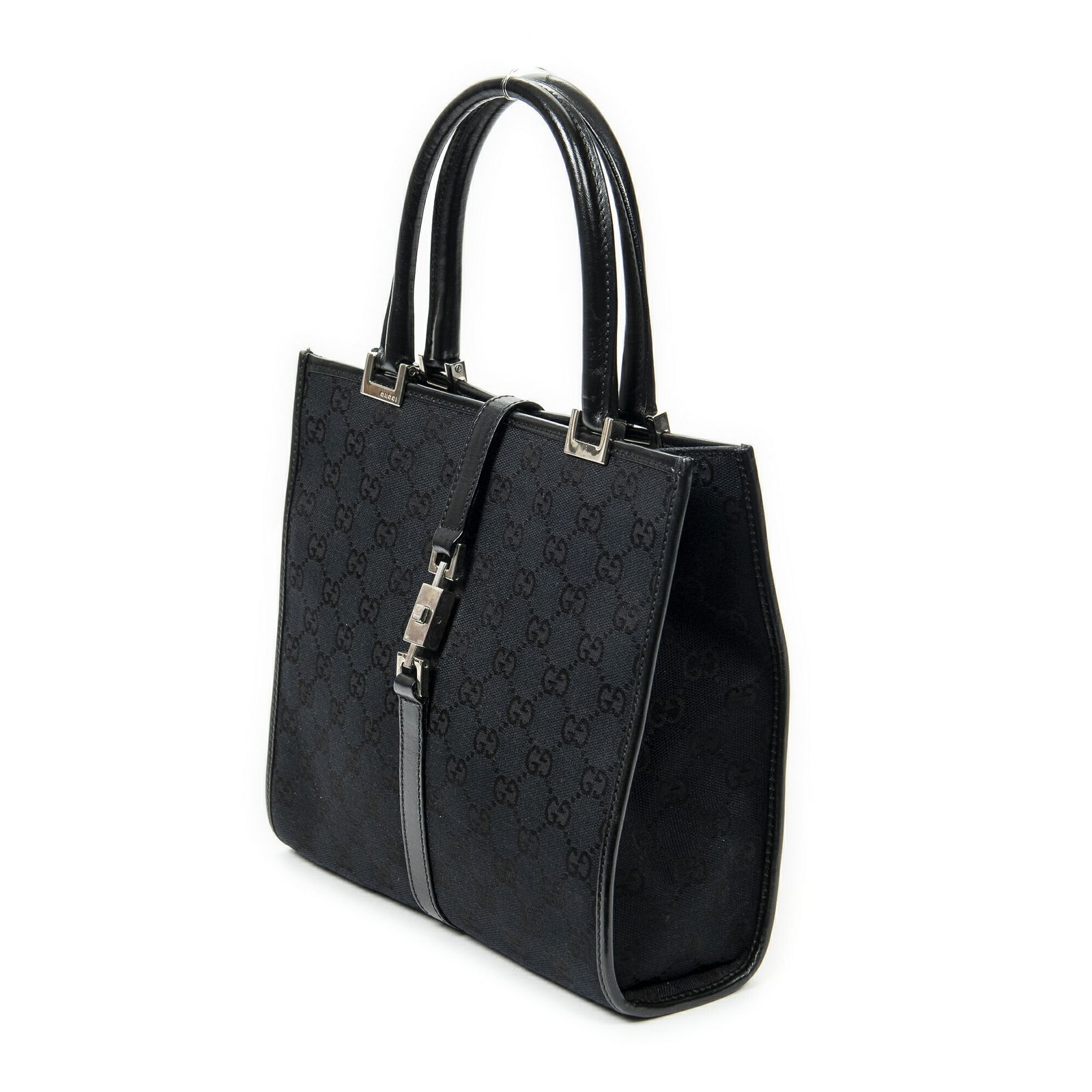 GUCCI グッチスクエア ジャッキー トート黒GGキャンバスA