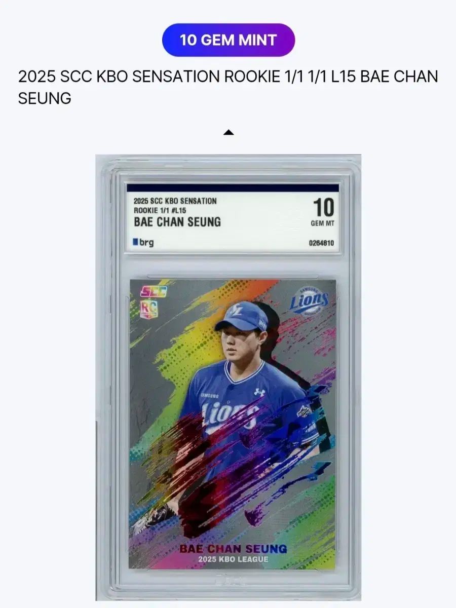 2025年 ディノ・イチャン 選手 ルーキー 麻 カードです。SCC KBO SHEON ルーキー 1/1、L15 EDITION エディションです。GEM MT 10で傷なし 状態良いです。別コメントなければすぐ 馬狼 照英 安全決済お願い致します!