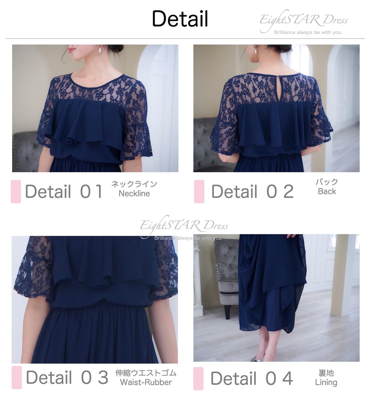 EightSTAR Dress パーティードレス 大きいサイズ ロング 大人 ゆったり 結婚式ドレス お呼ばれ Aライン 袖あり 体型カバー ぽっちゃり 上品 20代 30代 40代 妊婦 JP アルファベット L ネイビー