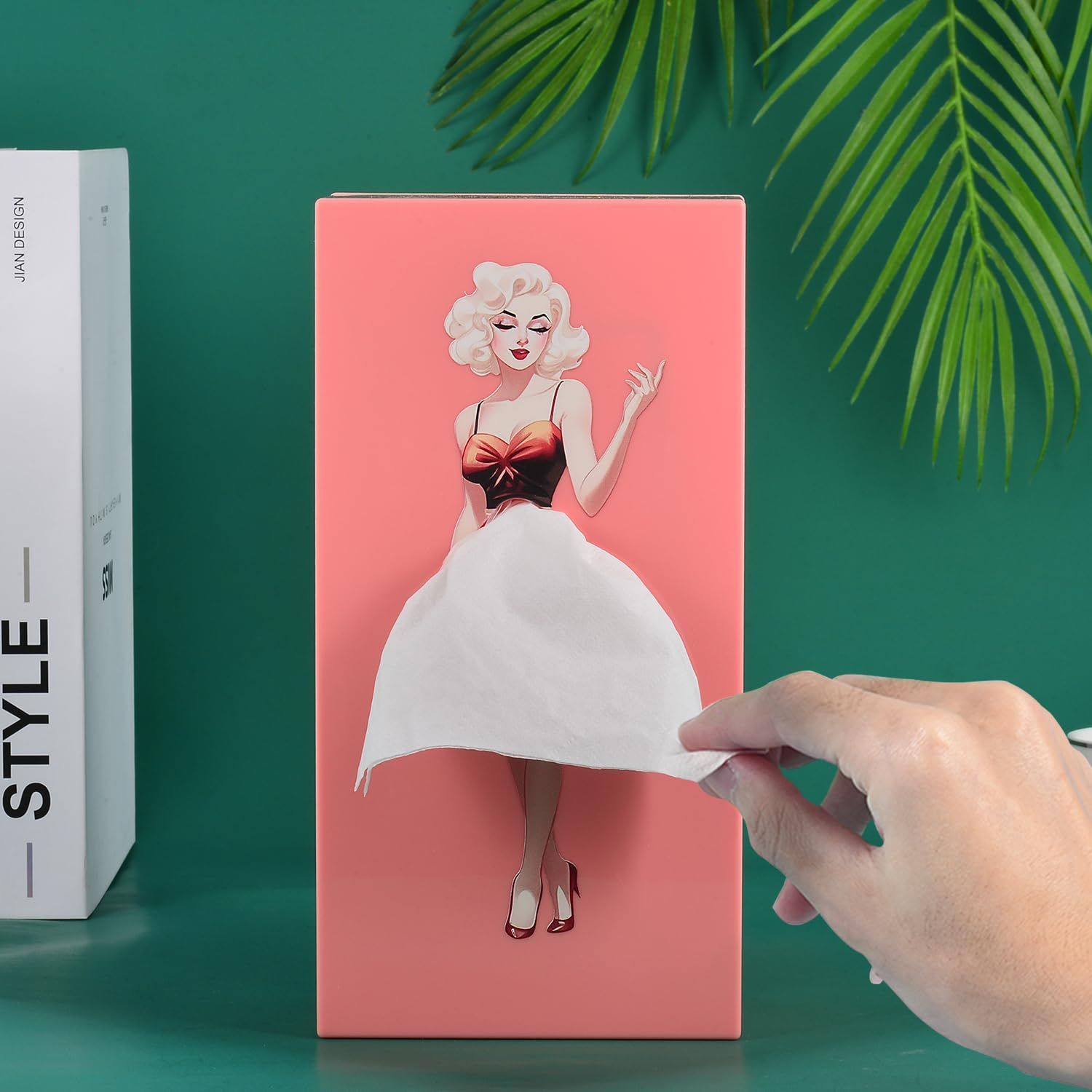 「ティッシュケース おしゃれ」この縦置きのティッシュケースは、通常のティッシュケースと異なり、湾曲した取り出し出口がキャラクターのイラストにマッチし、引き出されたティッシュがスカートのように優雅に垂れ下がります。毎回ティッシュの取り出しで、スカートのデザインが異なり、新鮮な感覚を楽しむことができます。内部は調節可能で、様々なサイズのティッシュに対応します。さらに、ティッシュケースは異なる色から選ぶことができます。