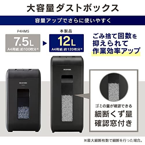 静音タイプ アイリスオーヤマ 静音シュレッダー 家庭用 細断枚数 マイクロクロスカット 細断速度2.0 m 分 連続使用10分 キャスター付き ダストボックス12 L A 4 収納 P HMSV-W ホワイト