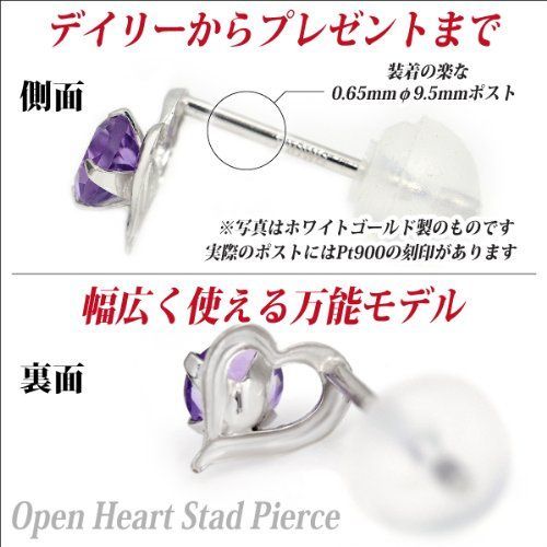 Pt900 プラチナ オープンハート ピアス スタッドピアス 両耳用ペア 2月誕生石アメジスト