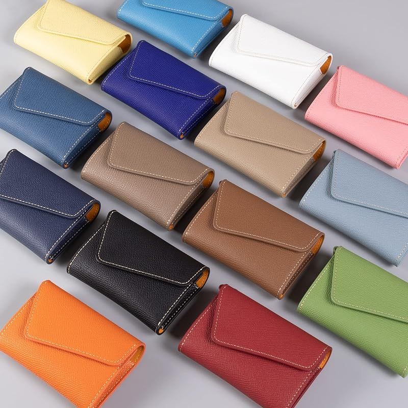 ツルツル・つやつやとした美しいエッジを実現するために、「ヘリ落とし」、「やすり掛け」、「コバ塗り」などの職人技を何度も繰り返し、丁寧に仕上げられています。継ぎ目のない一枚革を三つ折りにし、鍵をしっかりと包み、手に馴染みやすい美しいデザインに仕上げました。外側にはヨーロピアンエンボスレザー、内側にはスムースレザーを採用し、表も裏も本革という贅沢な仕様になっており、二種類のレザーの質感をお楽しみいただけます。